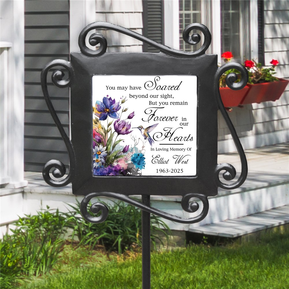 Featuring vibrant watercolor florals and a graceful hummingbird, this outdoor tribute adds a comforting touch to any garden or walkway. Customize with any name and memorial years to create a heartfelt keepsake that celebrates a life forever cherished.