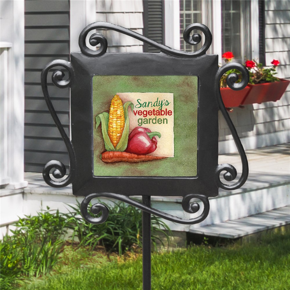 Show off your prized vegetable garden with our Personalized Vegetable Garden Stake. This garden favorite features fresh vegetables with your name on top. Includes FREE Personalization! Personalize with any name. (i.e. Sandy’s)