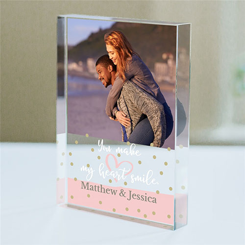 Cherish your special memories forever with our You Make My Heart Smile Vertical Acrylic Photo Keepsake. Make your favorite photo in to a timeless gift you’ll both appreciate for years to come.
